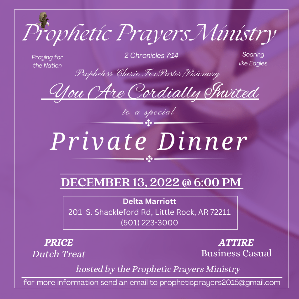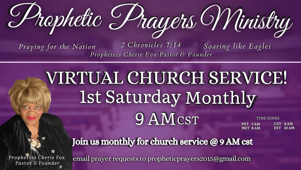 Hosted by Prophetess Cherie Fox Visionary of Prophetic Prayers Ministry